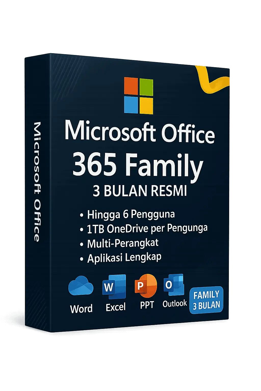 Microsoft Office 365 Family โ 3 Bulan Resmi adalah paket langganan premium yang memungkinkan hingga 6 pengguna dalam satu keluarga untuk menikmati layanan lengkap Microsoft 365. Dengan langganan ini, setiap pengguna mendapatkan akses penuh ke aplikasi populer seperti Word, Excel, PowerPoint, Outlook, OneNote, serta tambahan penyimpanan cloud OneDrive 1TB per pengguna.